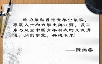 陈锦云先生 Mr.Ronald Chan 活动顾问 苏港交流促进会 活动顾问 社会职衔 个人简介 社会职衔 香港青年网络 理事长 香港青年大专学生协会执行委员会 委员 港台青年交流促进会 常务理事 香港国民教育促进会 常务理事 The Diamond Love Jewellery Company 董事 个人简介