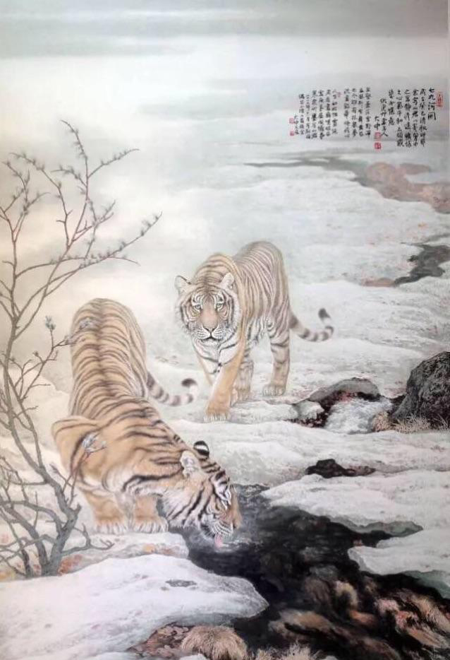 陆惟华博士与工笔走兽画大师冯大中教授在画展上