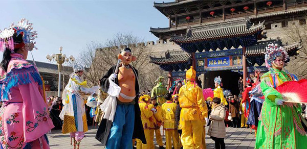 孙悟空、猪八戒师弟兄争唱主角,结果还是精明灵利的悟空记得己亥猪年,应该让12年一回的猪八戒唱回主角,并主动让位猪八戒走在前列。身心愚钝的猪八戒却以为自己的熊腰虎背和善于向师傅告状本领,又一次吓退了悟空“超前”