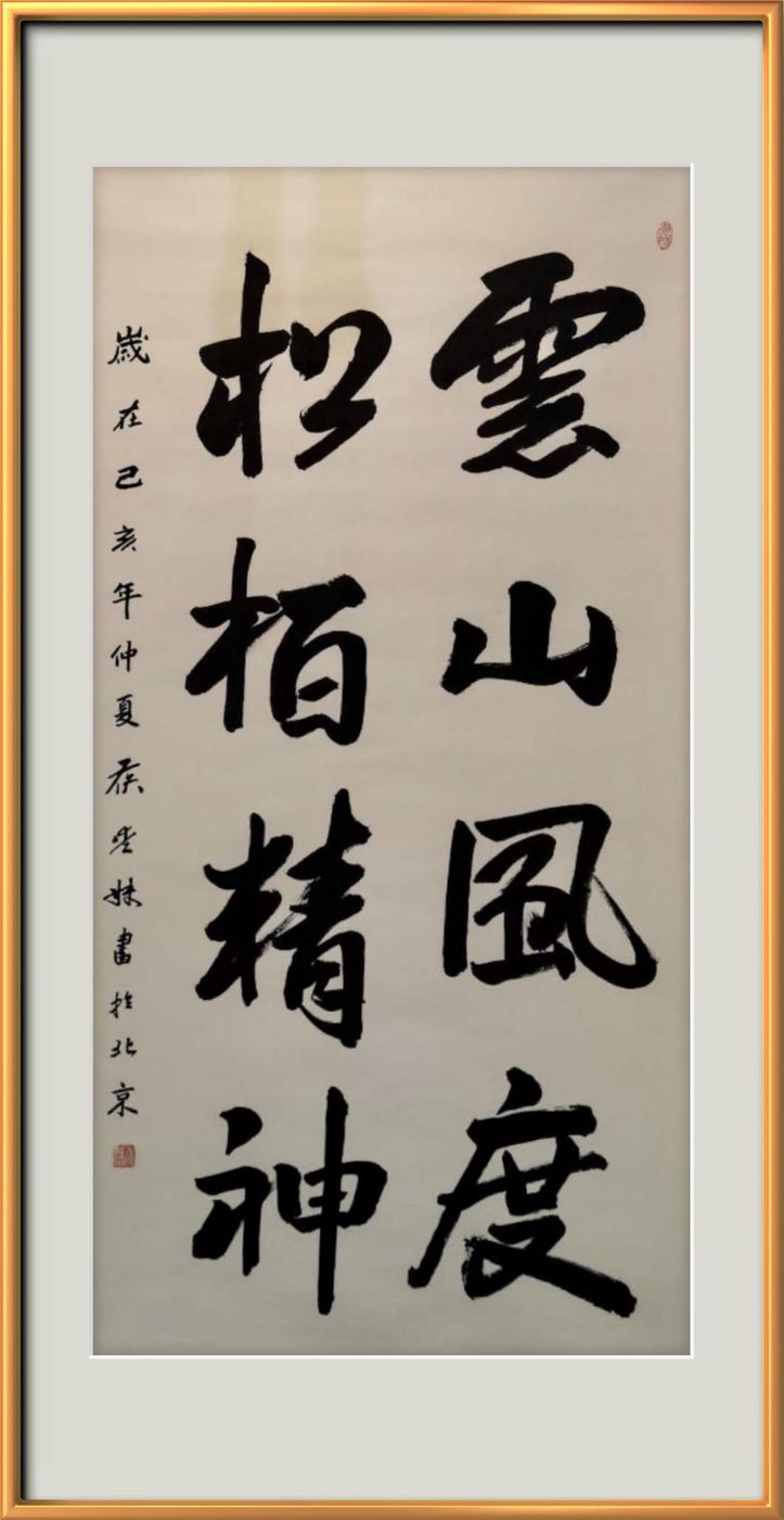 香港牡丹园书画协会荣誉会长陆惟华为香港著名法学家谢纬武、吴世娟伉俪挥毫书写墨宝