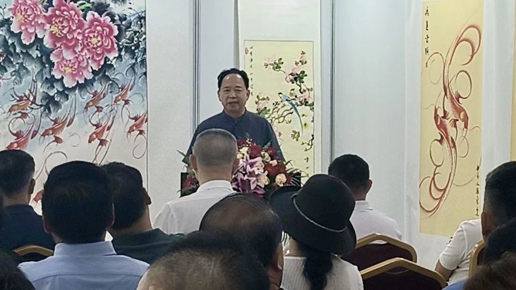 因受比利时世界文化艺术交流中心主席、香港国际文化艺术交流联会会长侯杏妹教授,联合国生态生命科学院院士、北京人民画院院长孙泳新博导,世界华人书法家协会胡素丹、阮渊椿、丘程光联合主席等60多个国际艺术联合机构的委托向组委会、三位艺术家、在座的嘉宾致以最崇高的敬礼!