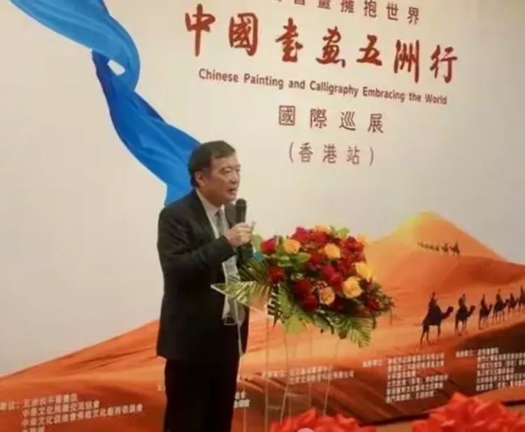 中影集团演员剧团团长、北京五洲和平书画院副院长臧金生代表北京五洲和平书画院高级顾问、致公党中央原副主席、全国人大、全国政协原常委杨邦杰在开幕致辞时指出:“中国书画五洲行”国际巡展来到东方之珠,意义十分重大。香港是中西文化的交汇之地,五洲和平书画院要活用香港的独特优势,发挥民间文化交流优势,充分利用华人华侨广泛的人脉资源,让中国更多优秀书画作品走向世界,让世界更全面地了解中国书画文化,为提高我国文化软实力、促进世界和平稳定作出应有贡献。
