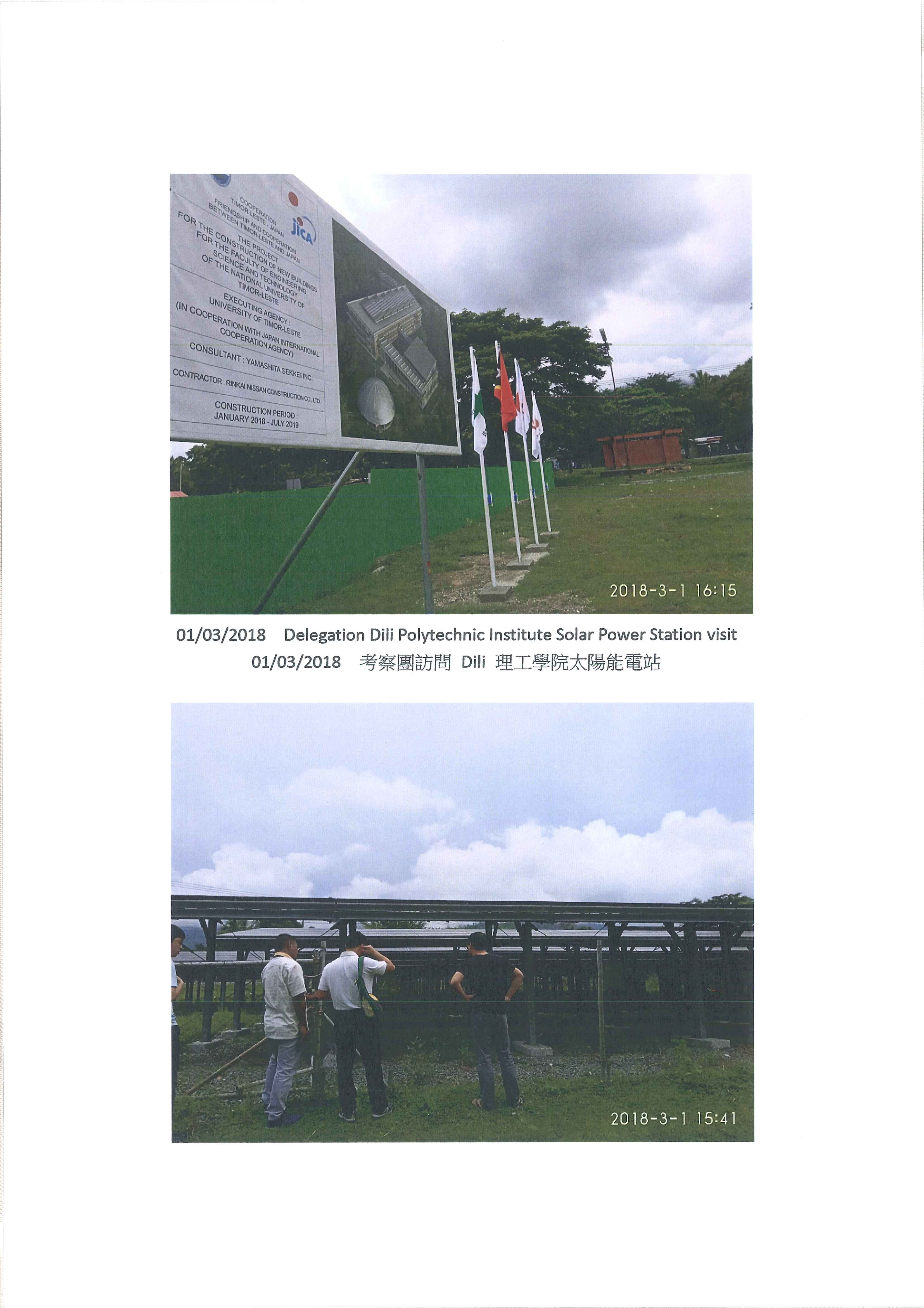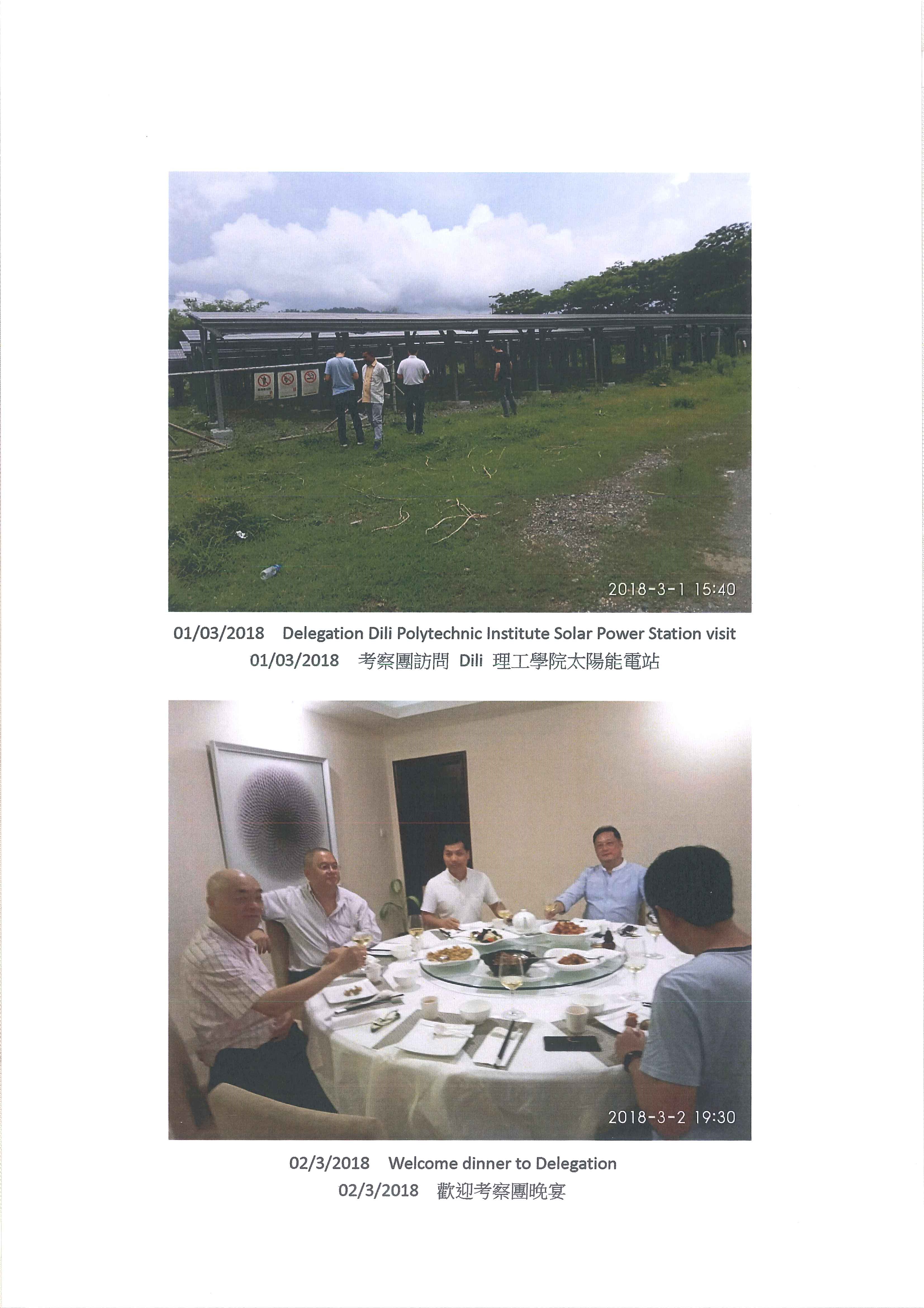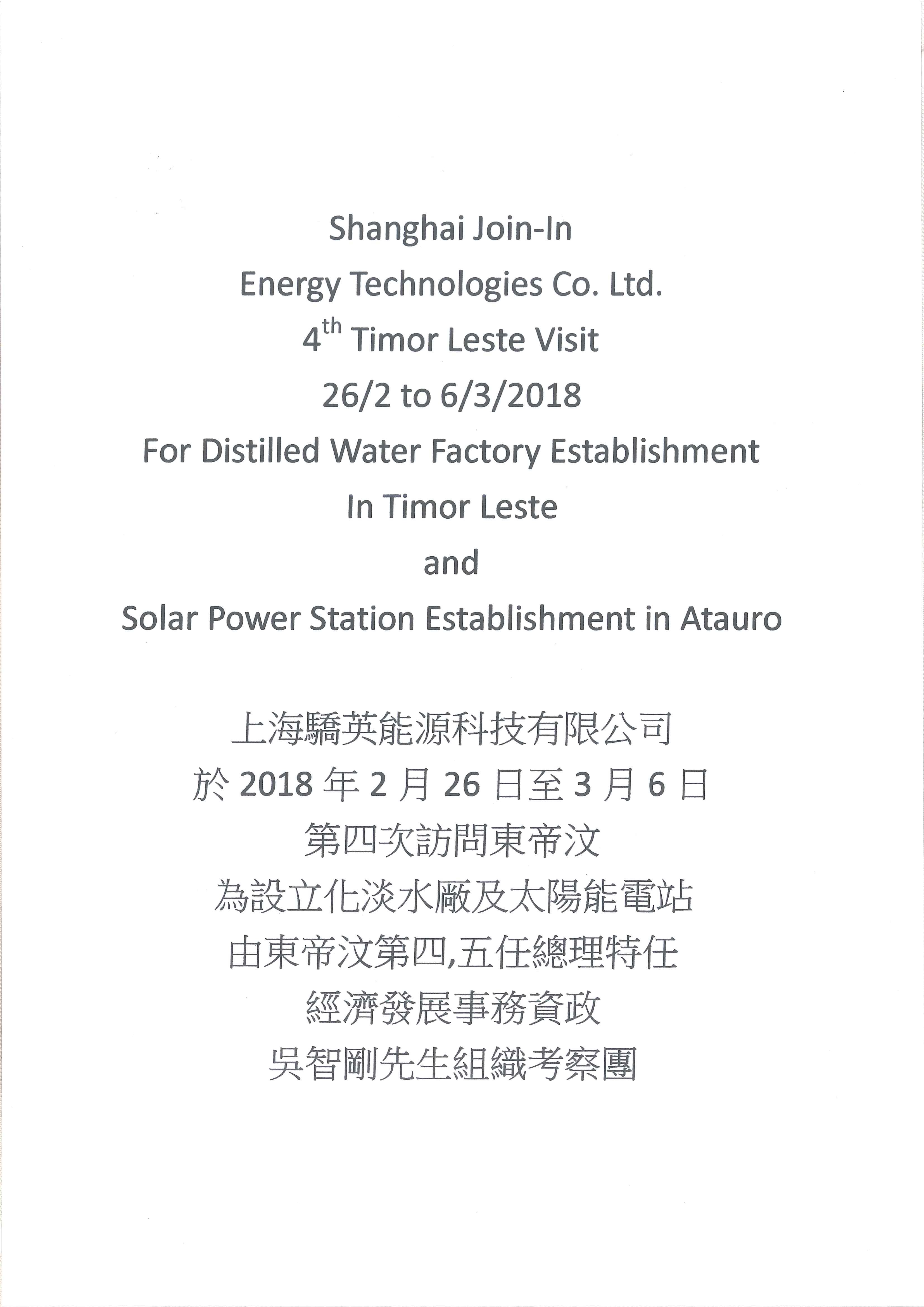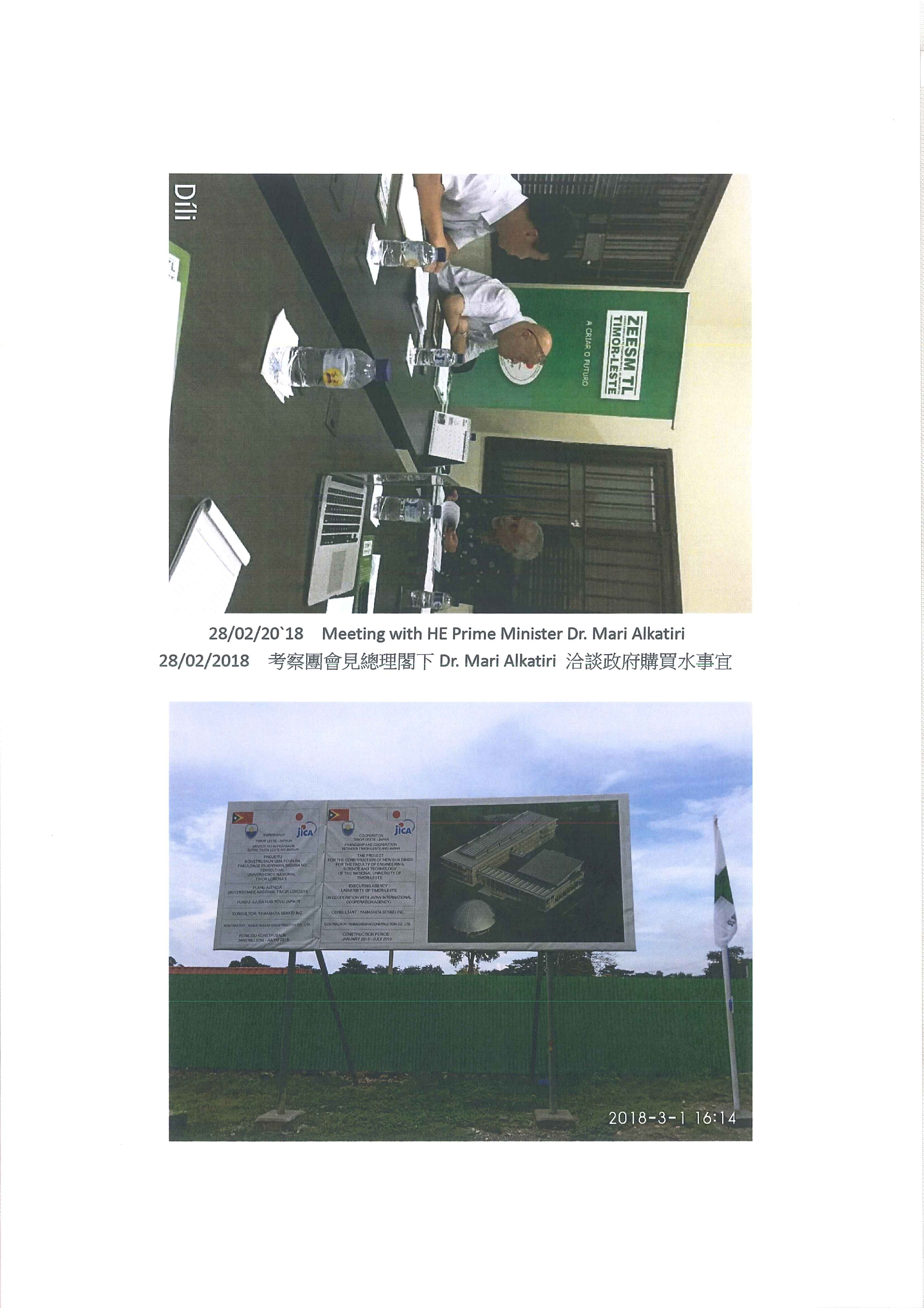於2018年2月26日至3月6曰第四次訪問東帝汶 為設立化淡水廠及太陽能電站