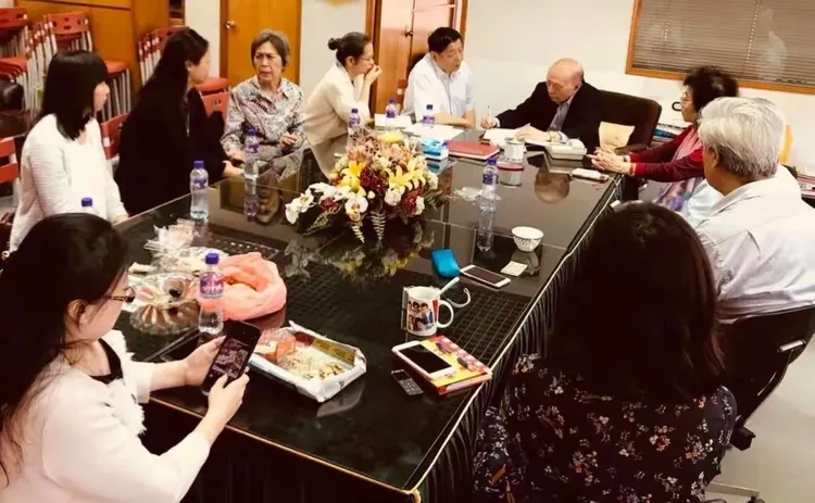 2018年4月4日,比利時世界文化藝術交流中心主席侯杏妹教授、比利時美術家協會主席陸惟華博士一行,專程拜訪香港華僑華人總商會古宣輝會長。彼時,85歲高齡的先生精神矍鑠,以飽滿的熱情接待來訪嘉賓,親自帶領大家參觀商會文化展區,隨後在座談會上,他以“凝聚僑心,報效祖國”為主題發表演講,字字鏗鏘、句句懇切,回顧數十年僑務工作歷程,分享海外僑胞與祖國同頻共振的感悟,讓在場每一位聽眾深受觸動、倍感敬佩。