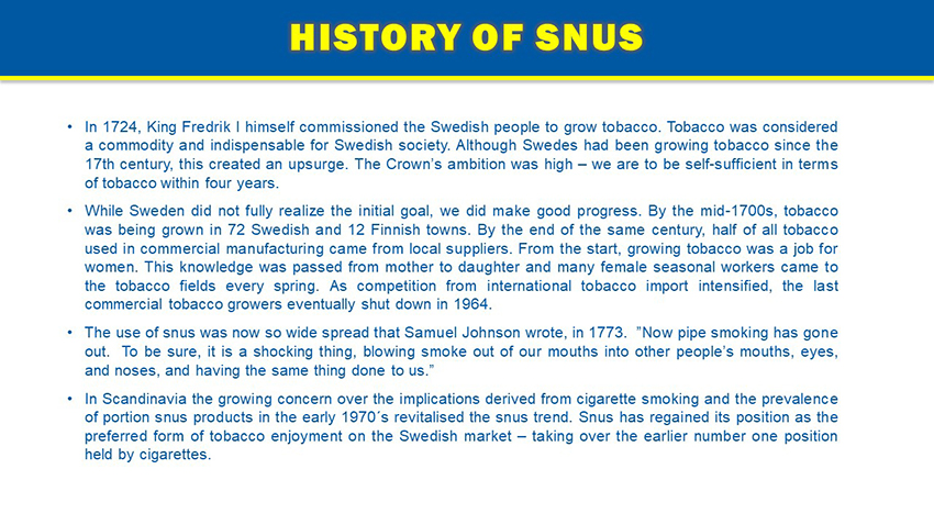 Smokeless tobacco products have existed in different cultures around the world, for thousands of years. Within the segment, the types of products vary significantly, reflecting local tastes and traditions.
