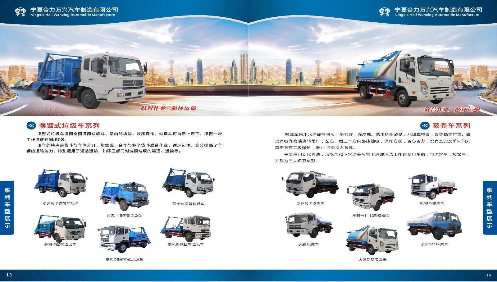 1、垃圾運輸系列:壓縮式、車廂移動式(鉤臂式)、擺管式、密封式、對接式掛桶式、餐廚式等;